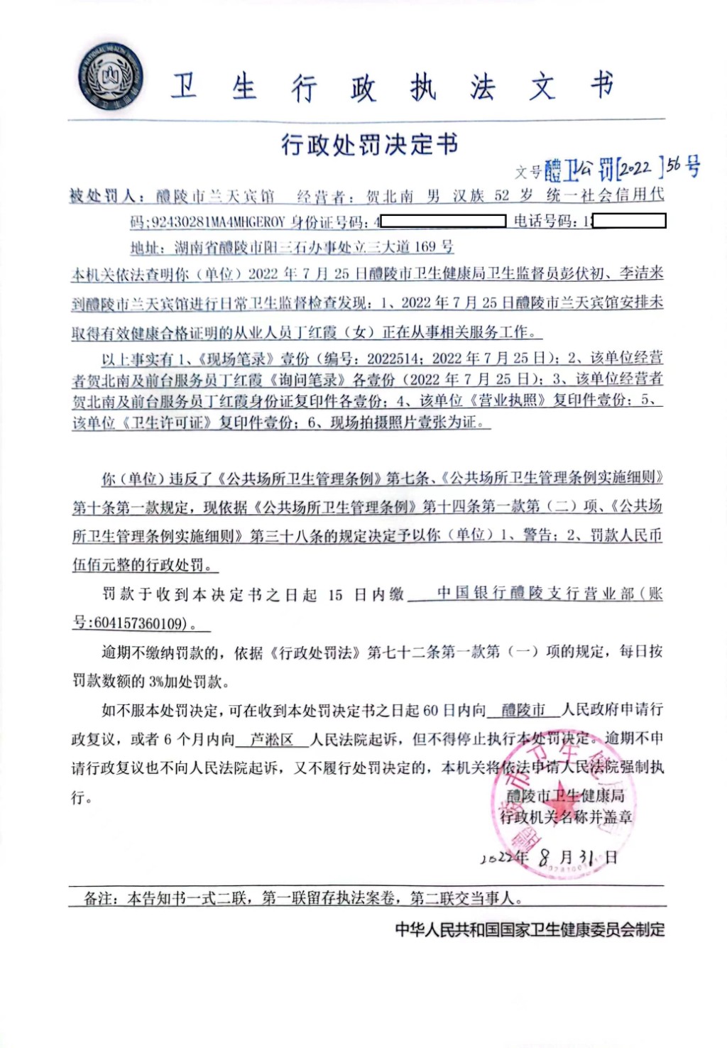 醴卫公罚[2022]56号