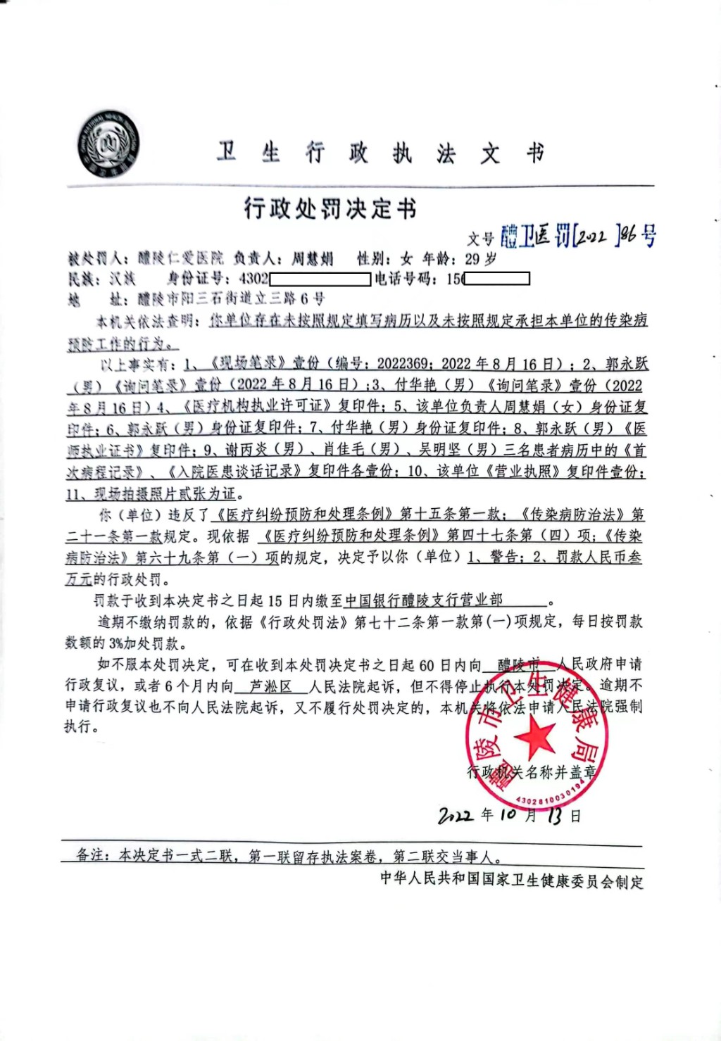 醴卫医罚[2022]86号
