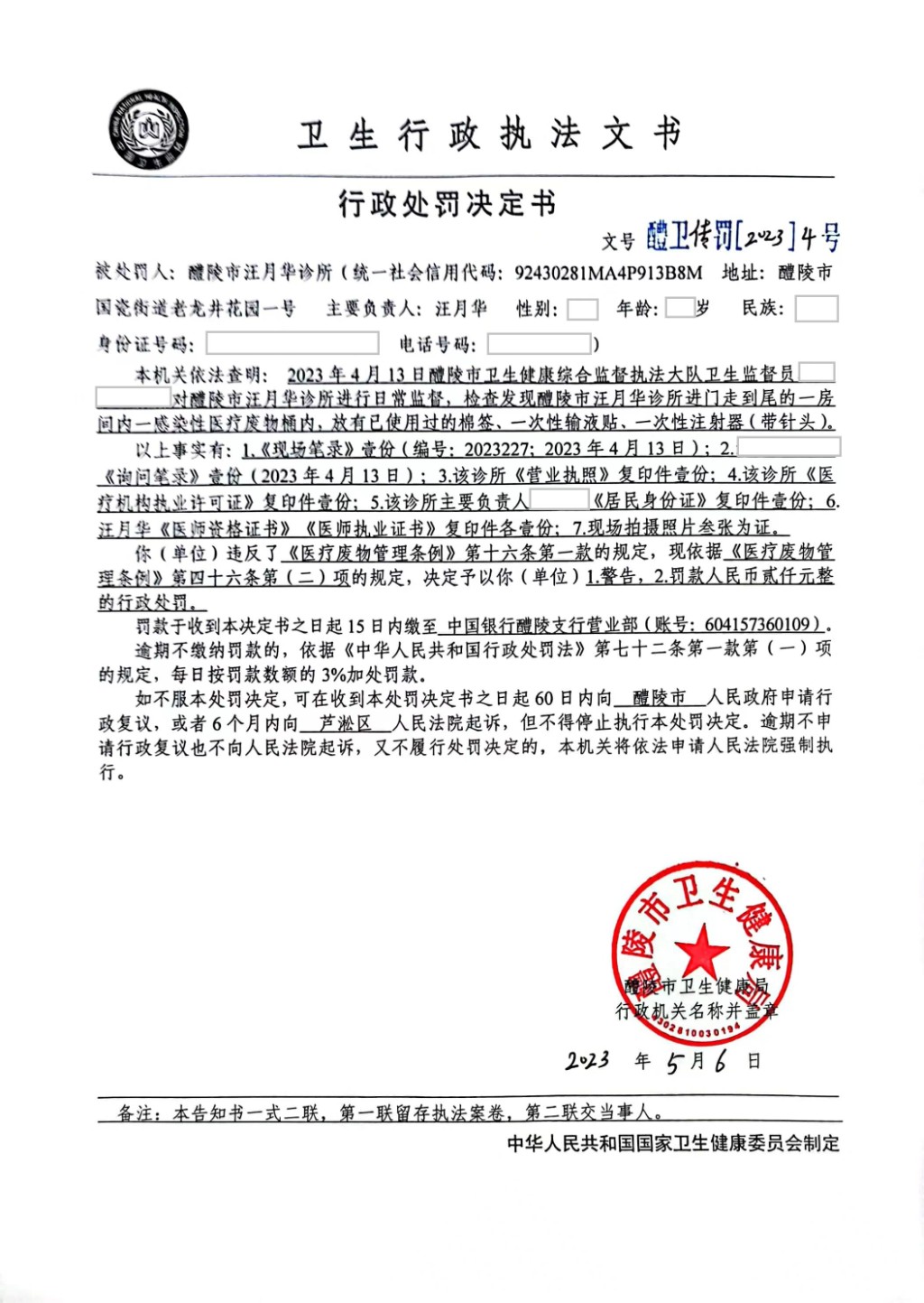 醴卫传罚[2023]4号