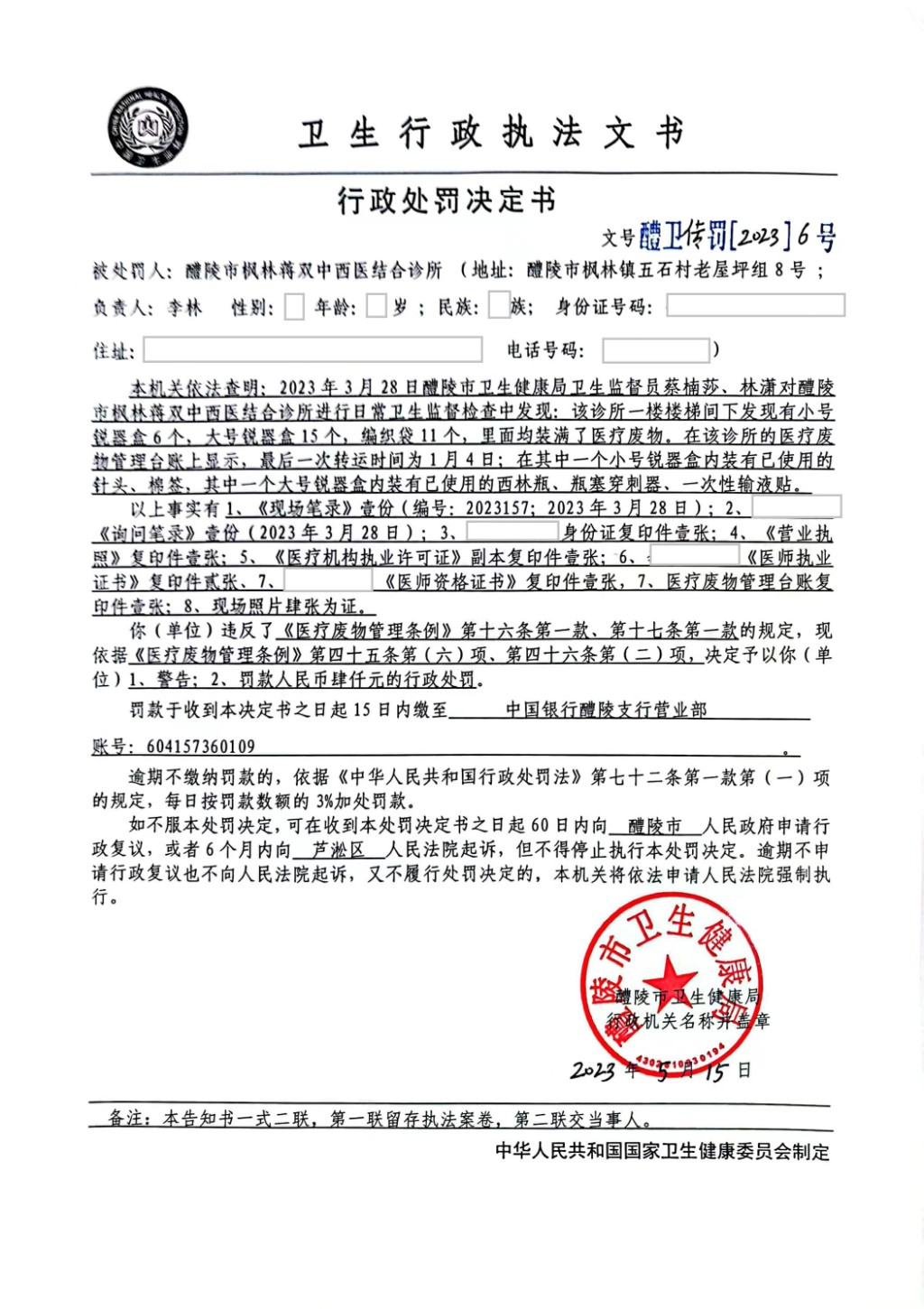 醴卫传罚[2023]6号