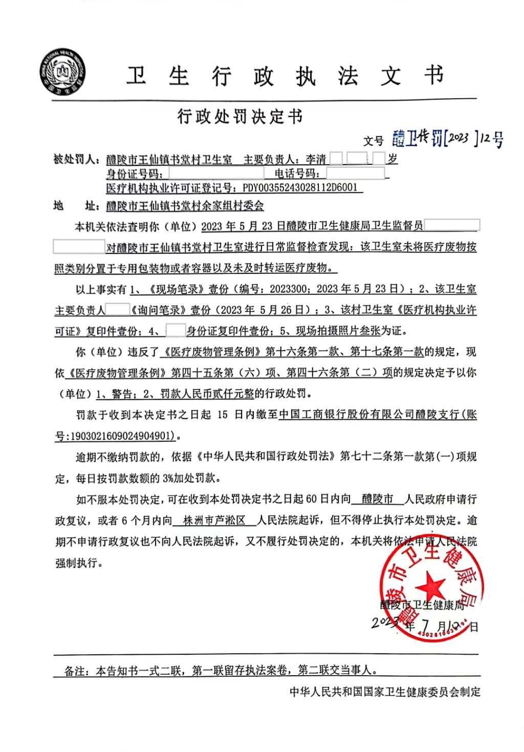 醴卫传罚[2023]12号