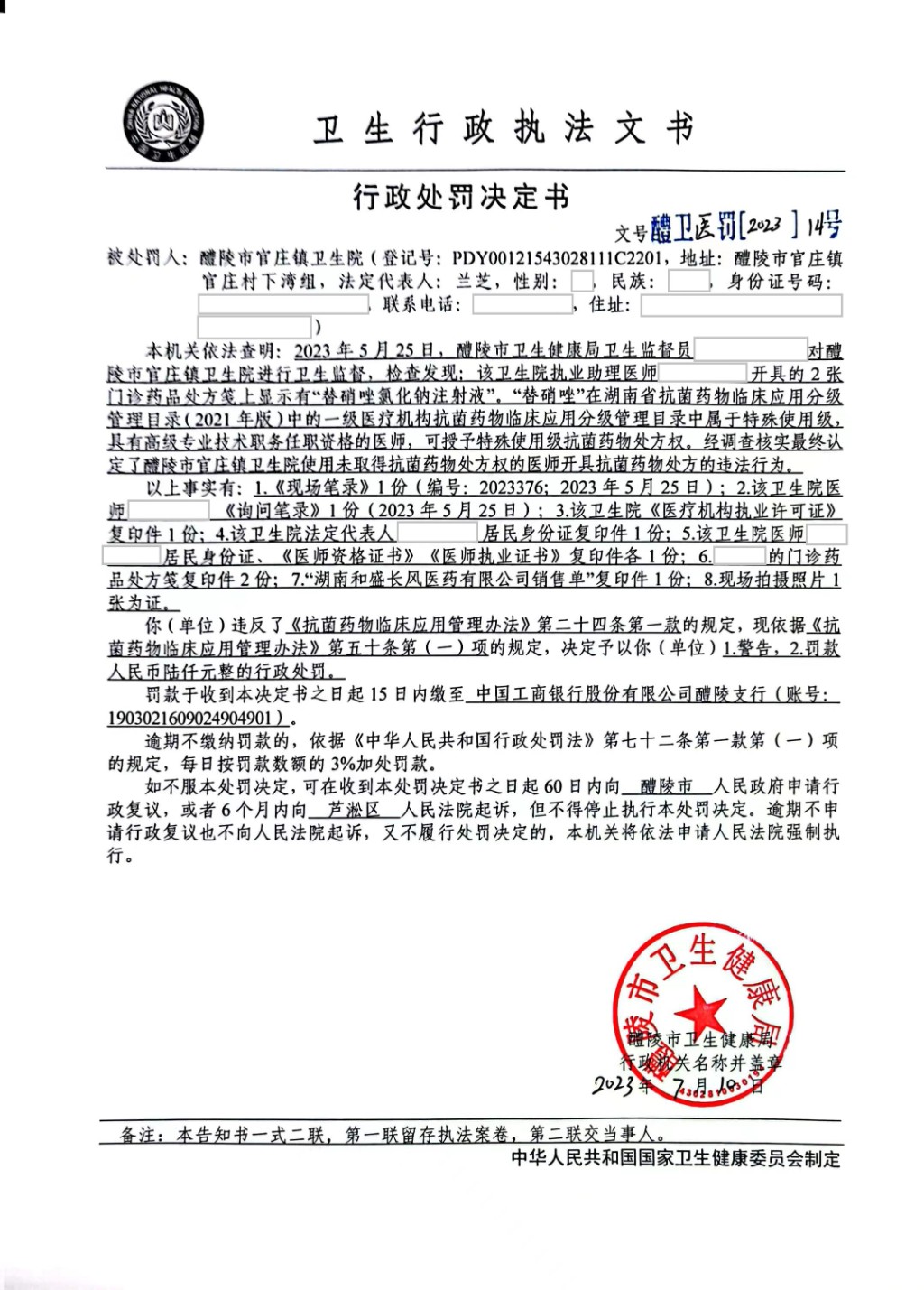 醴卫医罚[2023]14号