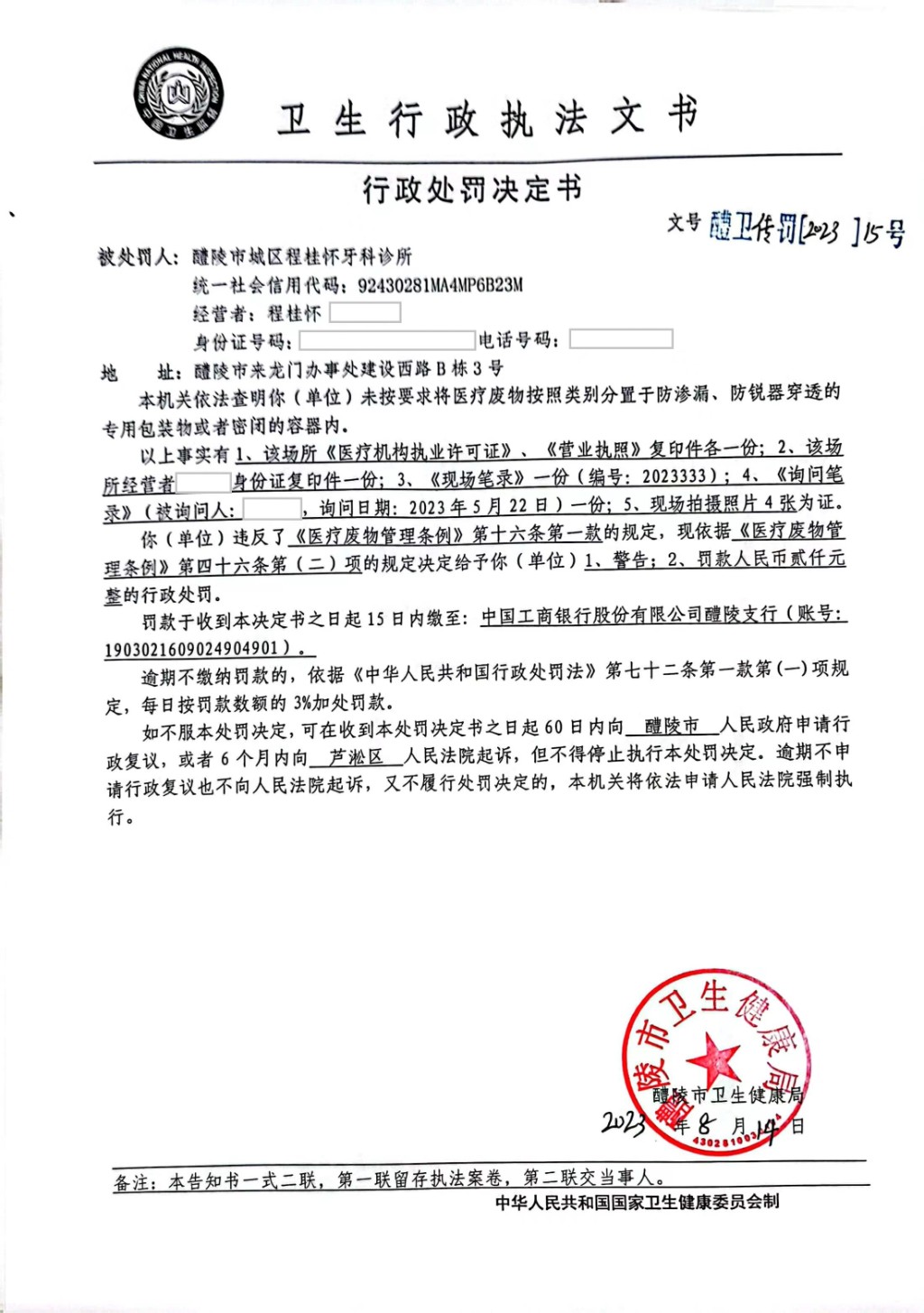 醴卫传罚[2023]15号