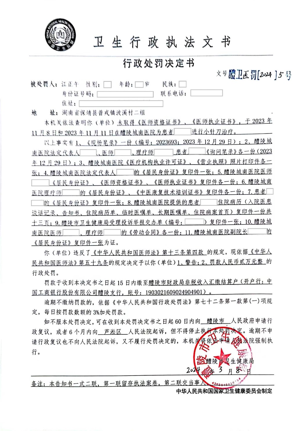 醴卫医罚〔2024〕5号