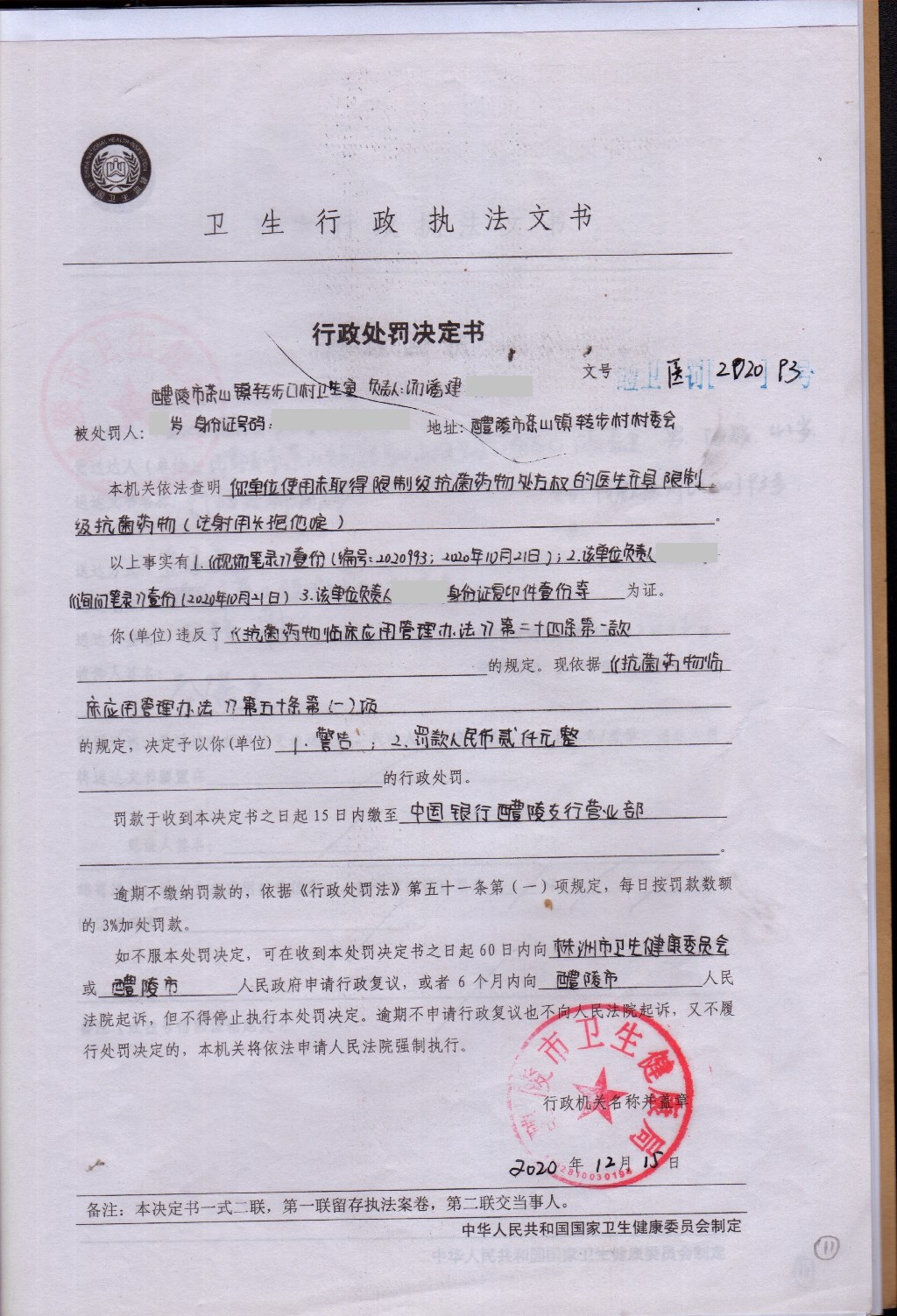 醴卫医罚[2020]93号