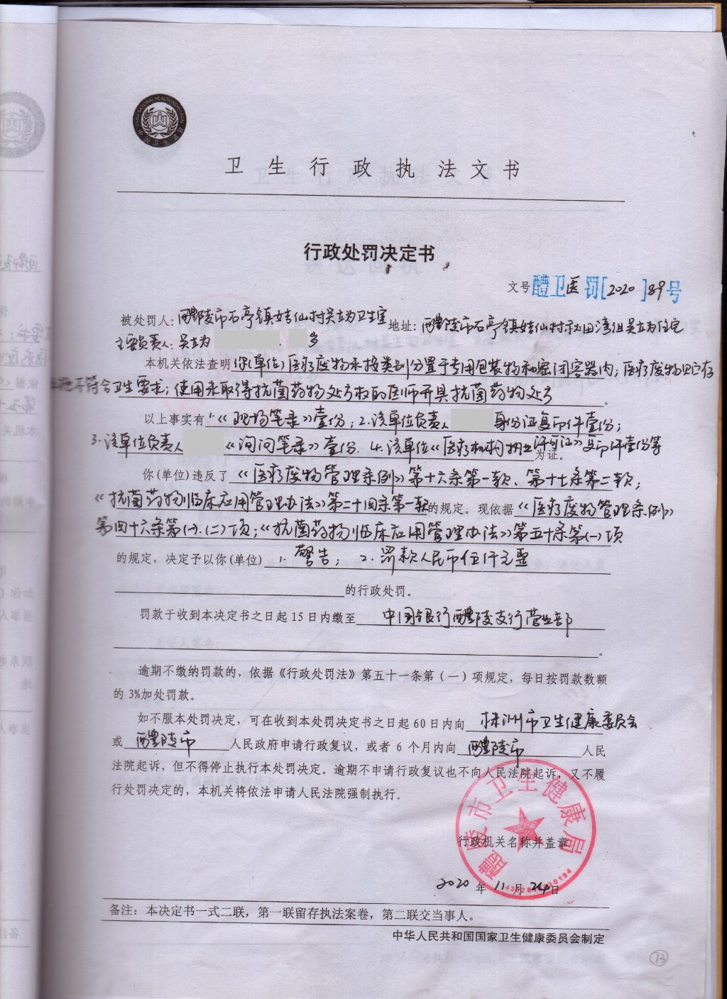 醴卫医罚[2020]89号
