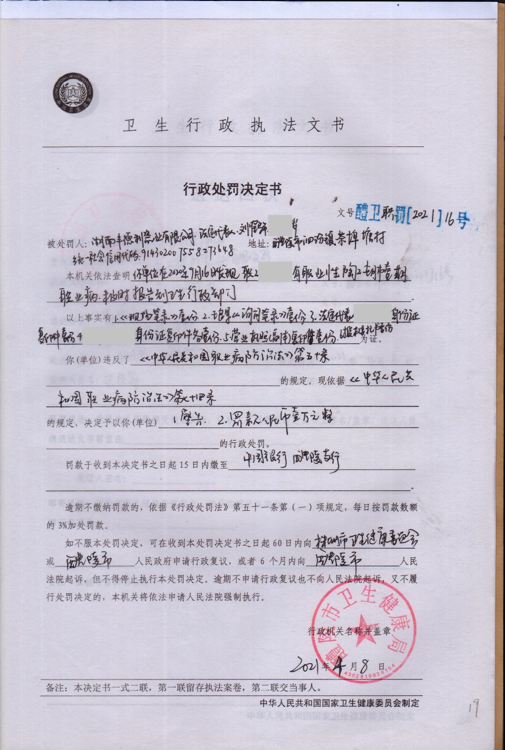 醴卫职罚[2021]16号