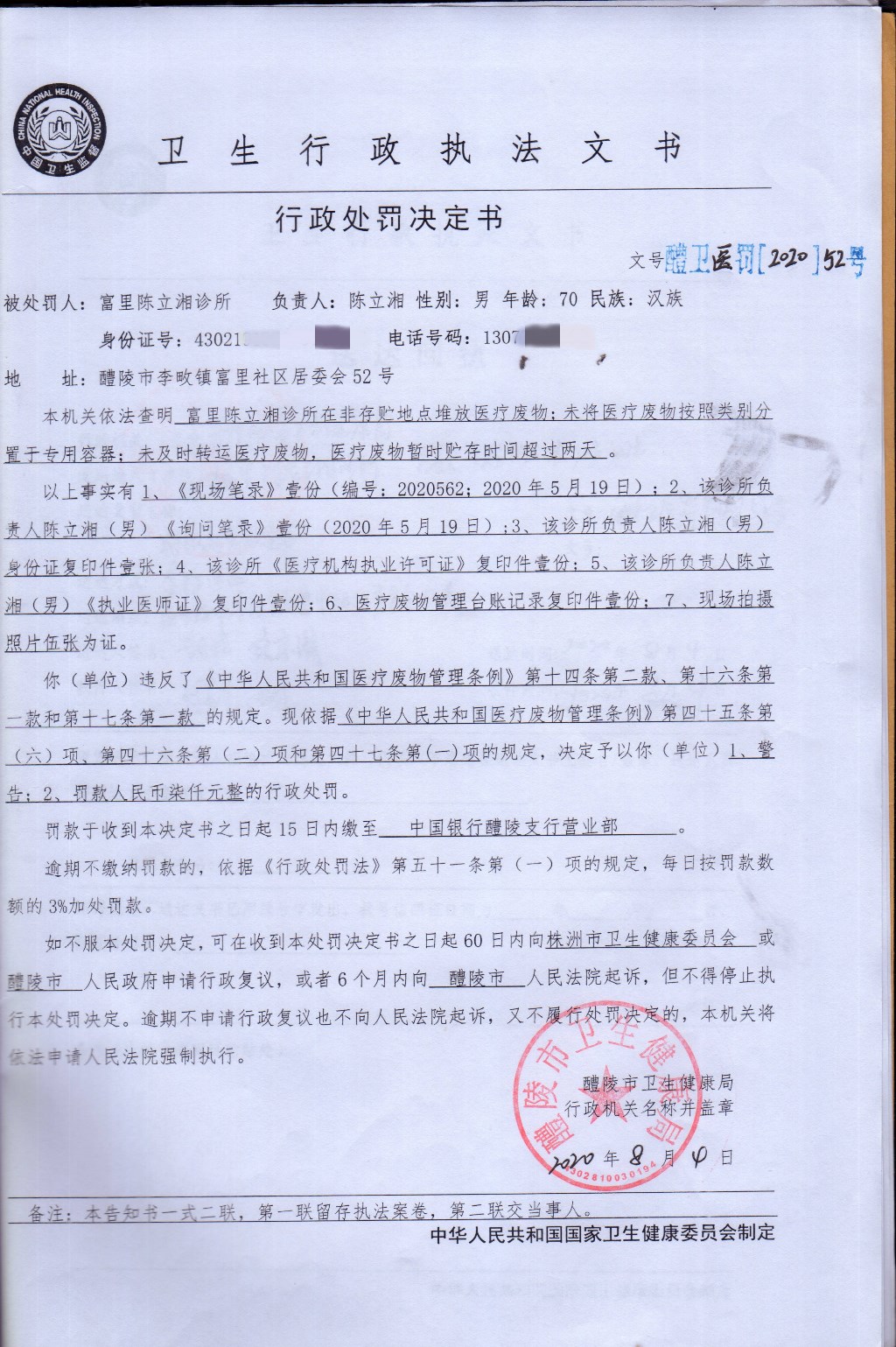 醴卫医罚[2020]52号