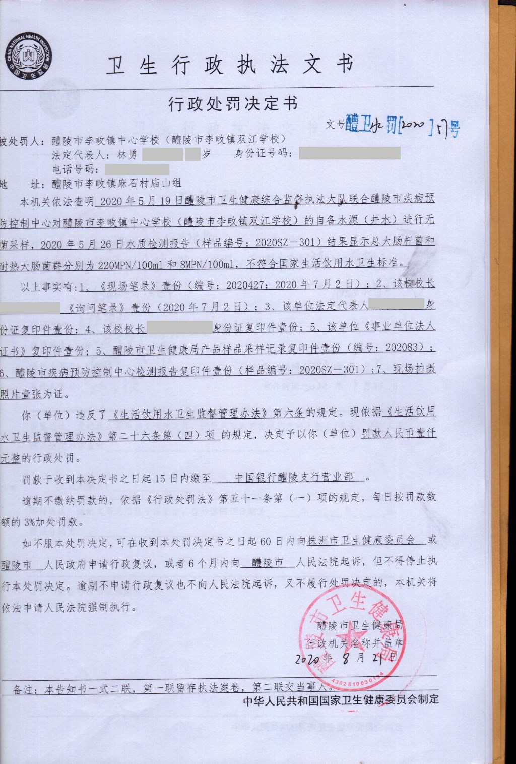 醴卫水罚[2020]57号
