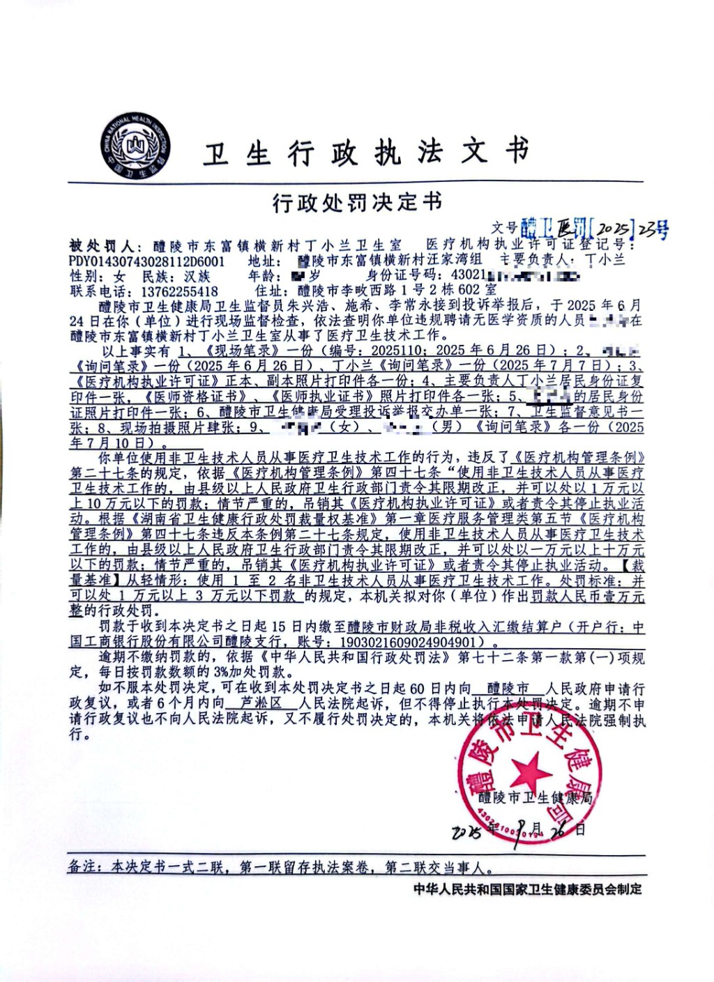 醴卫医罚【2025】23号