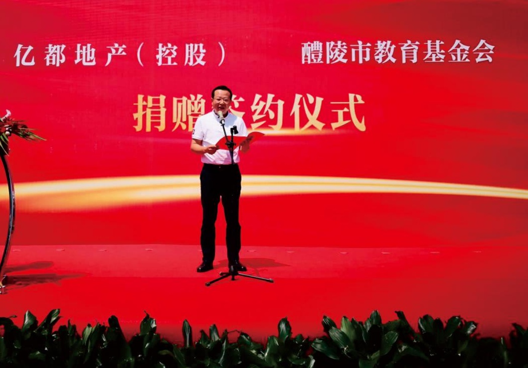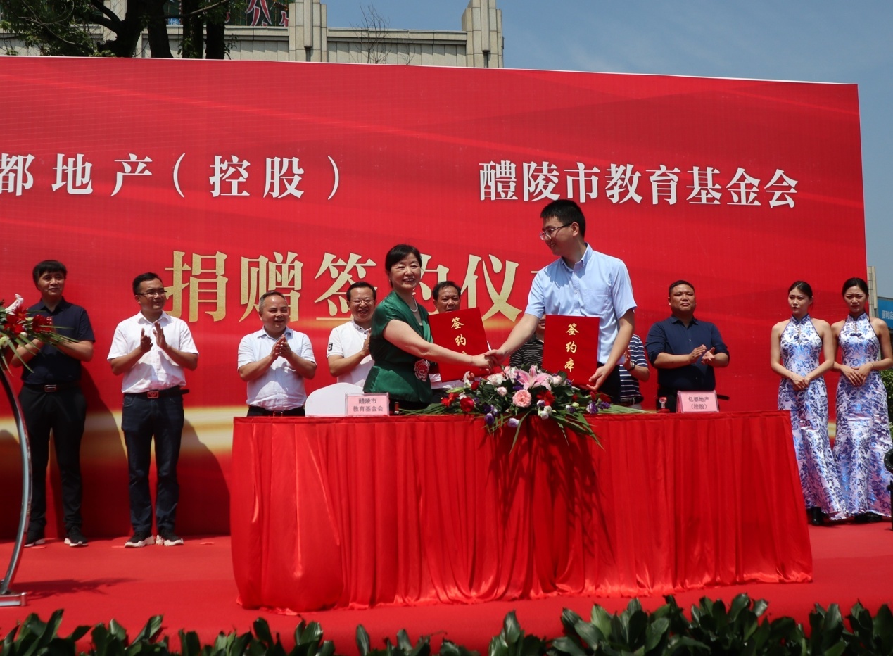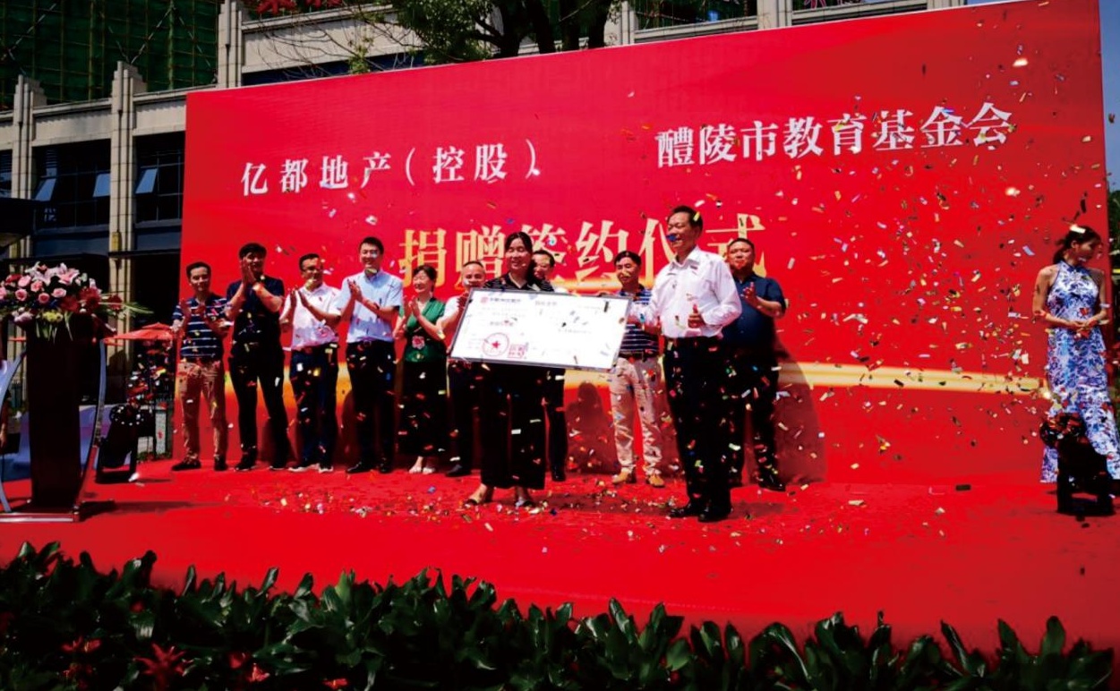 6月3日,亿都地产(控股)集团醴陵市教育基金会捐赠仪式在亿都·茉莉公馆营销中心隆重举行。