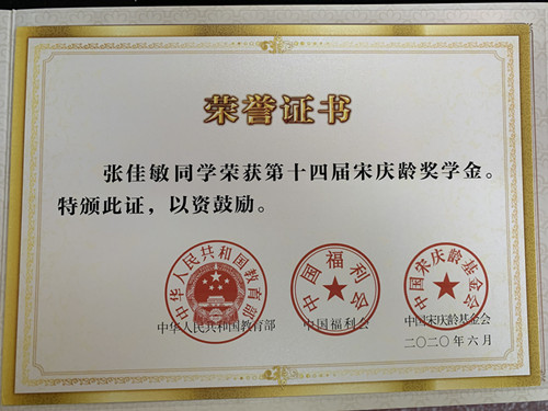 我市姜湾学子张佳敏获宋庆龄奖学金