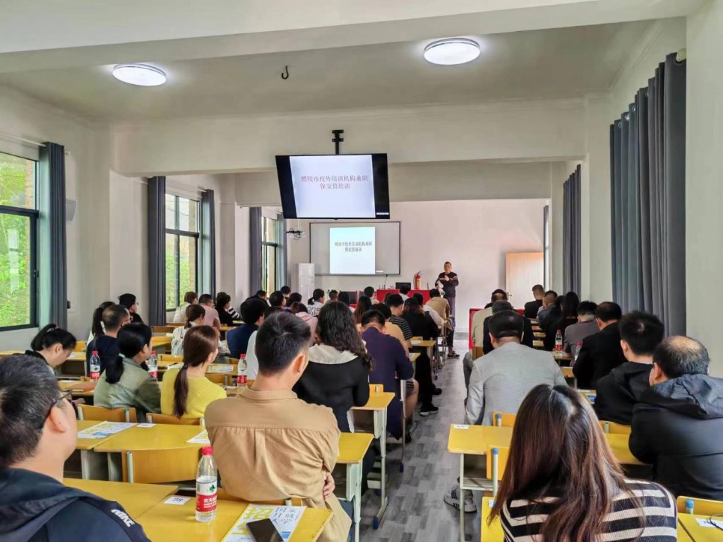 近日,醴陵市教育局联合市金盾保安服务有限责任公司,开展校外培训机构安全管理人员培训活动,对参会培训机构负责人重点从消防安全、应急预案演练和未成年人保护与强制报告制度等方面进行专题讲解,并现场组织纸质考试。