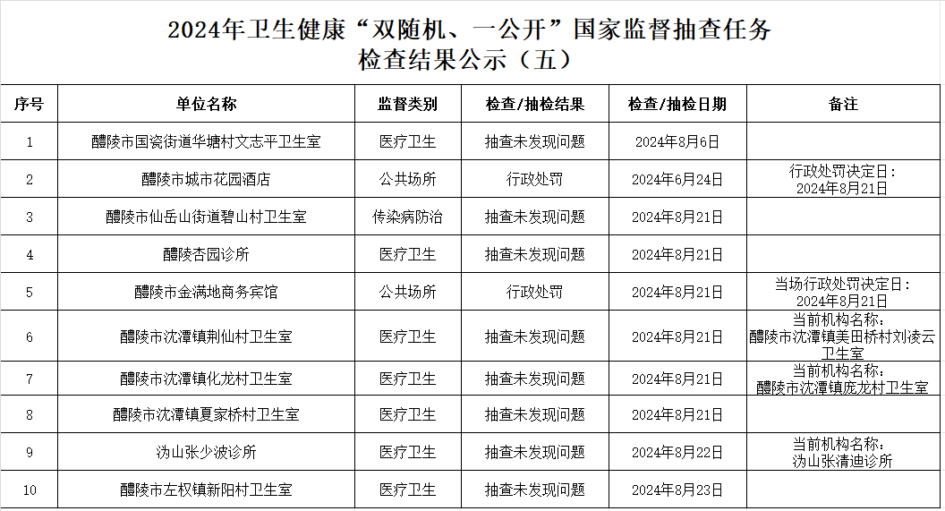 2024年卫生健康“双随机、一公开”国家监督抽查任务检查结果公示(五)