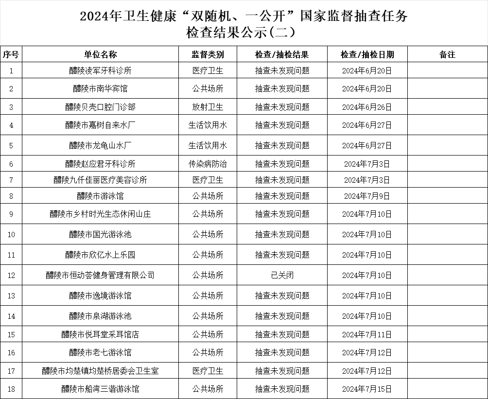 2024年卫生健康“双随机、一公开”国家监督抽查任务检查结果公示(二)