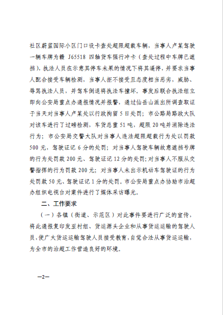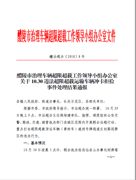 关于10.30违法超限超载运输车辆冲卡拒检事件处理结果通报