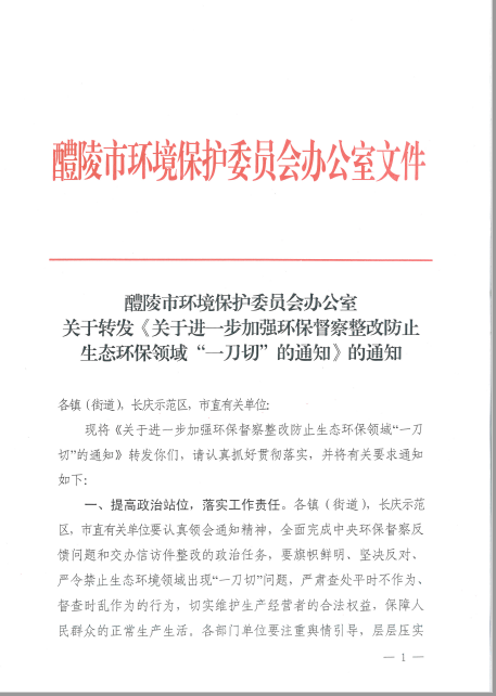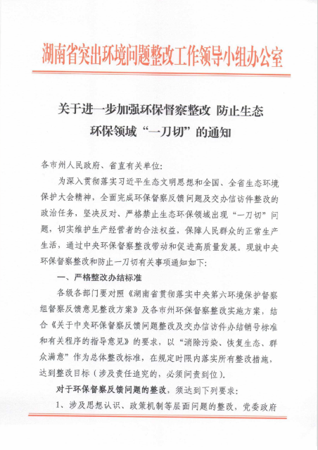关于转发《关于进一步加强环保督察整改防止生态环保领域“一刀切”的通知》的通知
