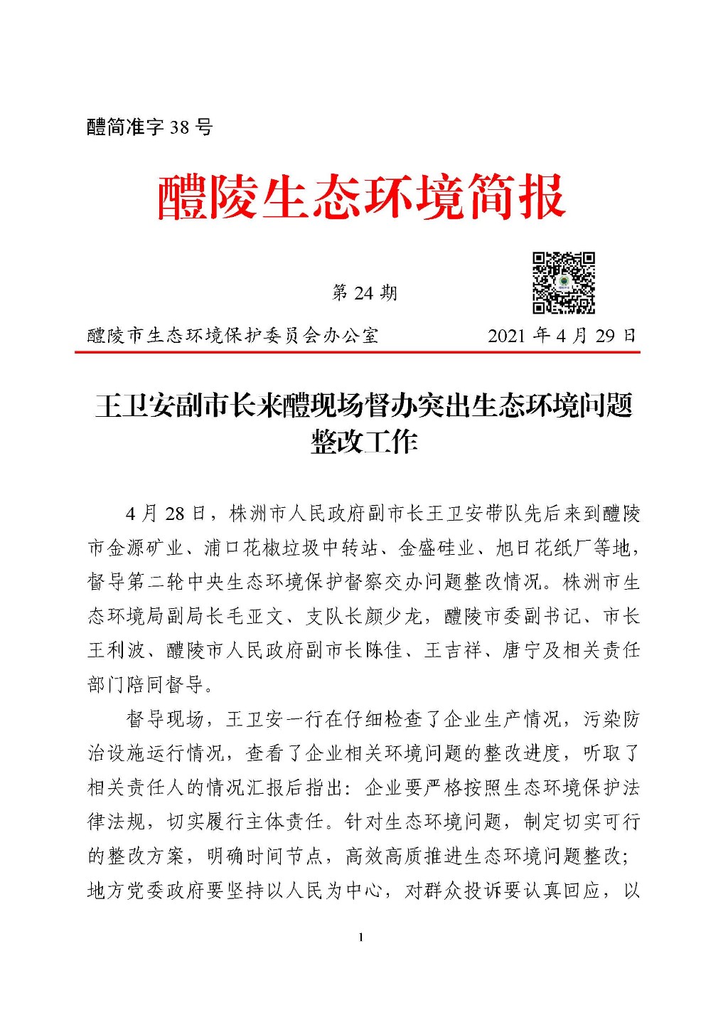 醴陵生态环境工作简报第24期