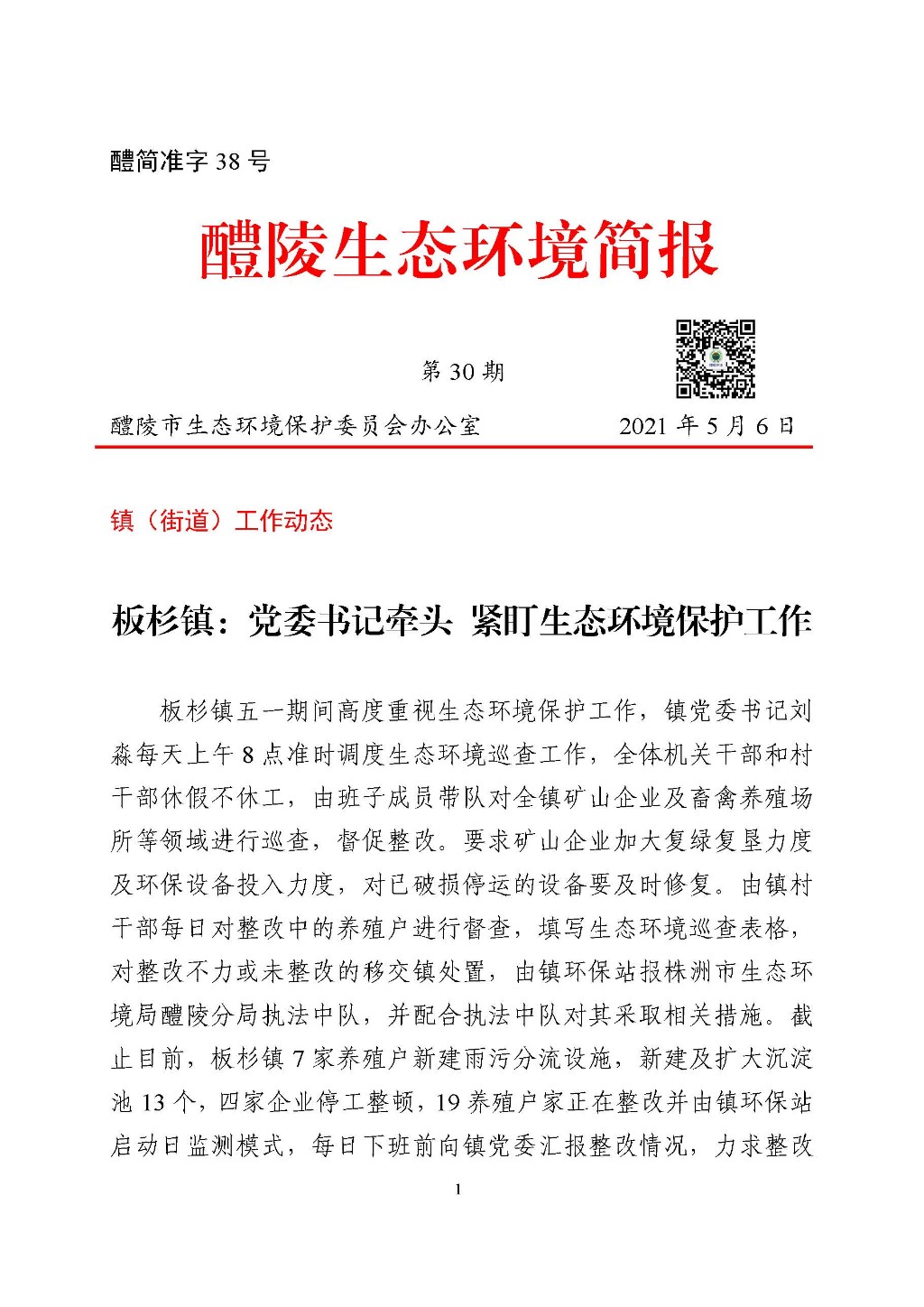 醴陵生态环境工作简报 第30期