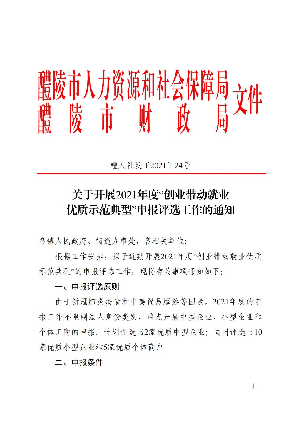 关于开展2021年度“创业带动就业优质示范典型”申报评选工作的通知