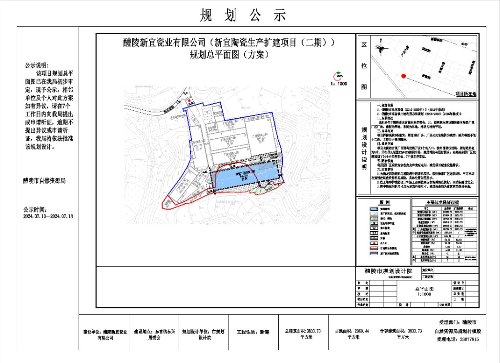 醴陵新宜瓷业有限公司(新宜陶瓷生产扩建项目(二期))规划总平面图(方案)公示