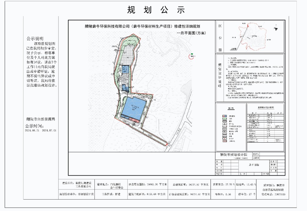 醴陵鑫牛环保科技有限公司(鑫牛环保材料生产项目)修建性详细规划(方案)公示