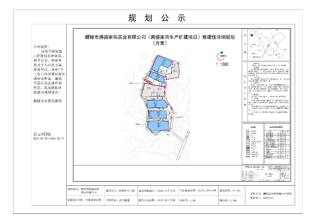 醴陵市腾盛家俬实业有限公司(腾盛家具生产扩建项目)修建性详细规划(方案)公示