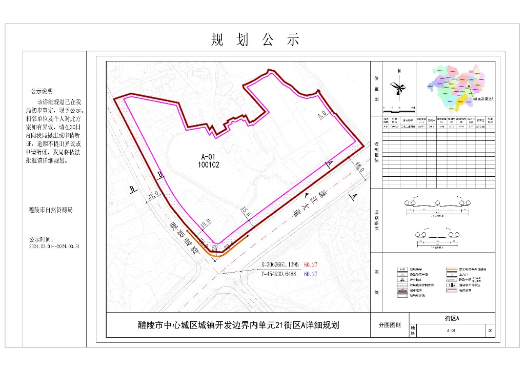 醴陵市中心城区城镇开发边界内单元21街区A详细规划公示