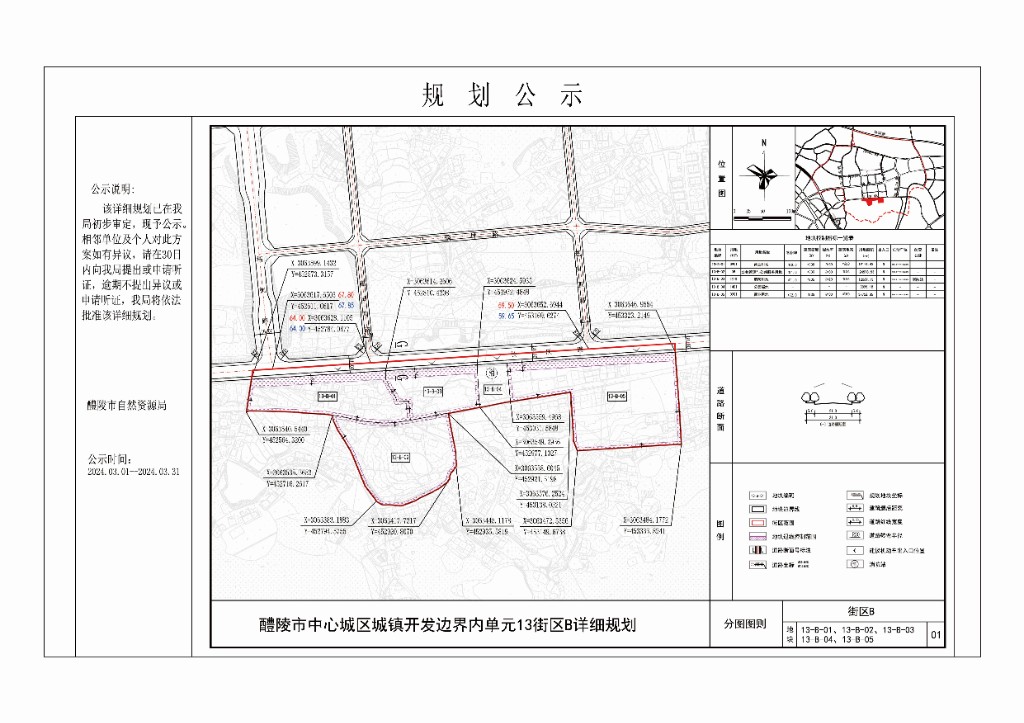 醴陵市中心城区城镇开发边界内单元13街区B详细规划公示