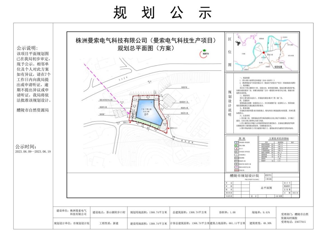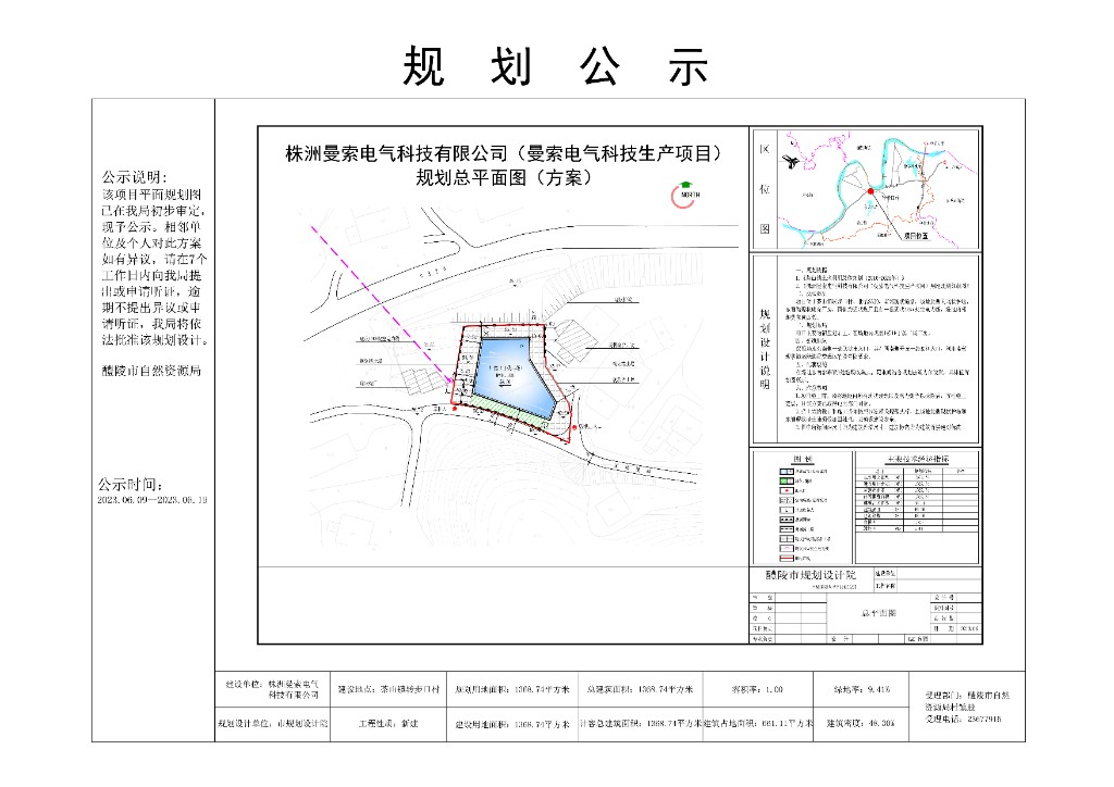 株洲曼索电器科技有限公司(曼索电气科技生产项目)规划总平面图(方案)公示