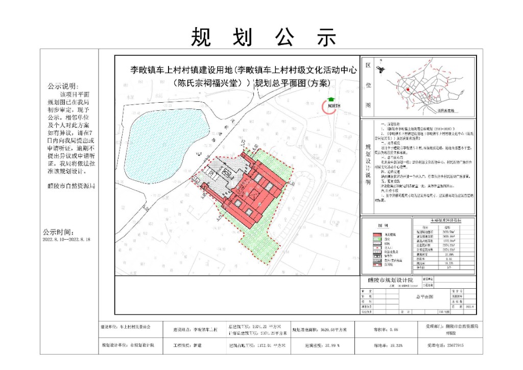 李畋镇车上村城镇建设用地(李畋镇车上村村级文化活动中心(陈氏宗祠福兴堂))规划总平面图(方案)公示