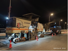 西山大桥是连接主城区与河西的重要桥梁,也是醴陵最繁忙的桥梁之一。因桥面沥青混凝土路面为2007年铺设,已超过正常使用寿命,出现坑洼、开裂等破损现象,存在一定安全隐患。为尽快完成桥面提质改造,市政工程维护中心向交警部门申办相关手续后,将施工时间选在了周末的夜间。