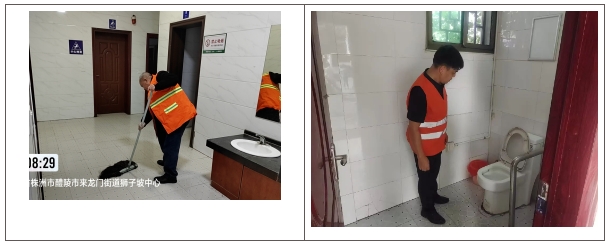 公厕里,保洁人员认真擦拭每一个角落,保障干净清爽无异味。