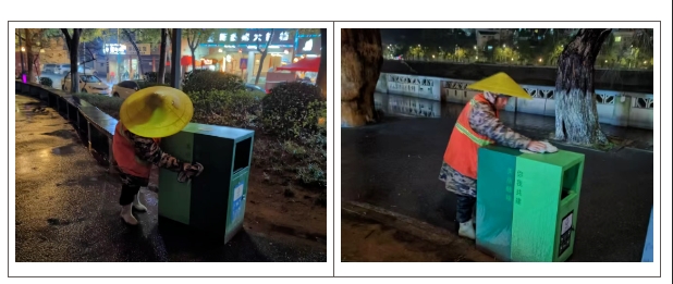 夜晚,当华灯初上,他们依然坚守在城市保洁的岗位上。