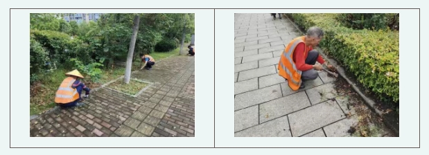 行动主要采用人工清理的方式,重点清理绿化带、人行道以及背街小巷周边的杂物、杂草与累积尘沙。清理现场,每一个环卫工人都是“清理达人”,针对不同位置、不同大小的杂草使用不同的工具,生长范围较大或植株较大的直接用铁锹铲去,植株较小的或生长在树坑内、休闲座椅下方等位置较为隐蔽的则用铲子一点一点铲除,甚至直接徒手连根拔除,并同步将草丛中、绿化带中的垃圾清理干净,将偏僻小巷、角落的大件陈年垃圾清运走。