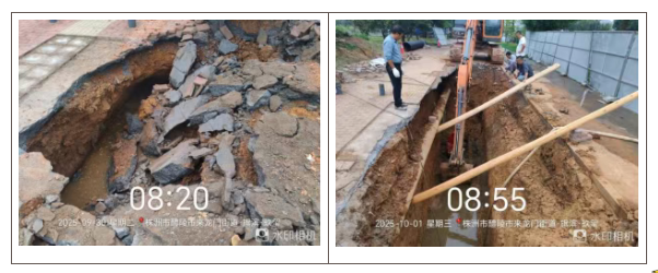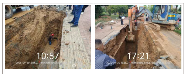 假日期间,市政中心工作人员放弃休息,奋战抢险,成功处置醴陵大道旗滨玖玺段人行道污水管道塌陷险情,以“市政速度”守护了城市的正常运转和市民的出行安全。