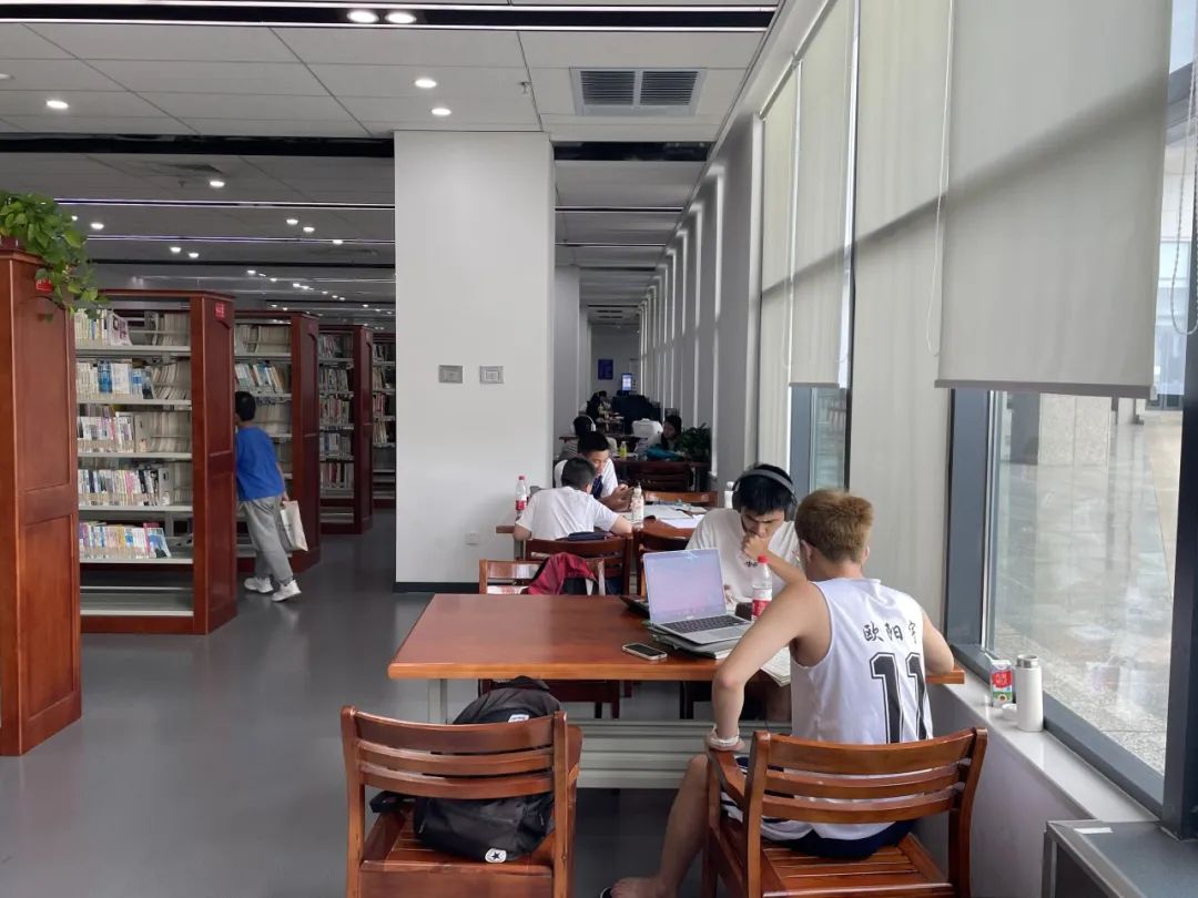 尽管刚开馆没多久,但图书馆里仍坐满了学习或看书的学生和市民。有三两朋友结伴而来的,也有家长陪着孩子来的,大家埋首桌前,看书、做题......