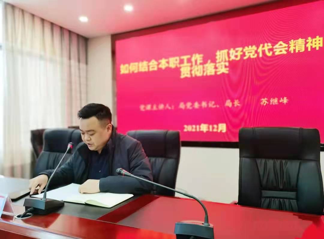 随后,局党委书记、局长苏继峰结合当前应急管理工作实际,以"如何结合本职工作,抓好省代会精神贯彻落实"主题,为全局党员上了一场主题鲜明、意义深刻的专题党课。苏继峰指出,要切实提高政治站位,深刻领会省第十二次党代会精神要义,认真研究报告决议,务实精准发力,对标落实目标任务,切实统筹好发展和安全两件大事,进一步强理念、明思路,强后盾、顺体制,强法治、硬手段,强基层、打基础,强统领、铸铁军,全力守护人民生命财产安全。要以岁末年初安全生产百日大会战为抓手,以务实的作风干在实处、走在前头,层层传导责任压力,坚决守护安全稳定,全力以赴做好年底收官冲刺工作,为明年工作开好头、起好步奠定坚实基础。