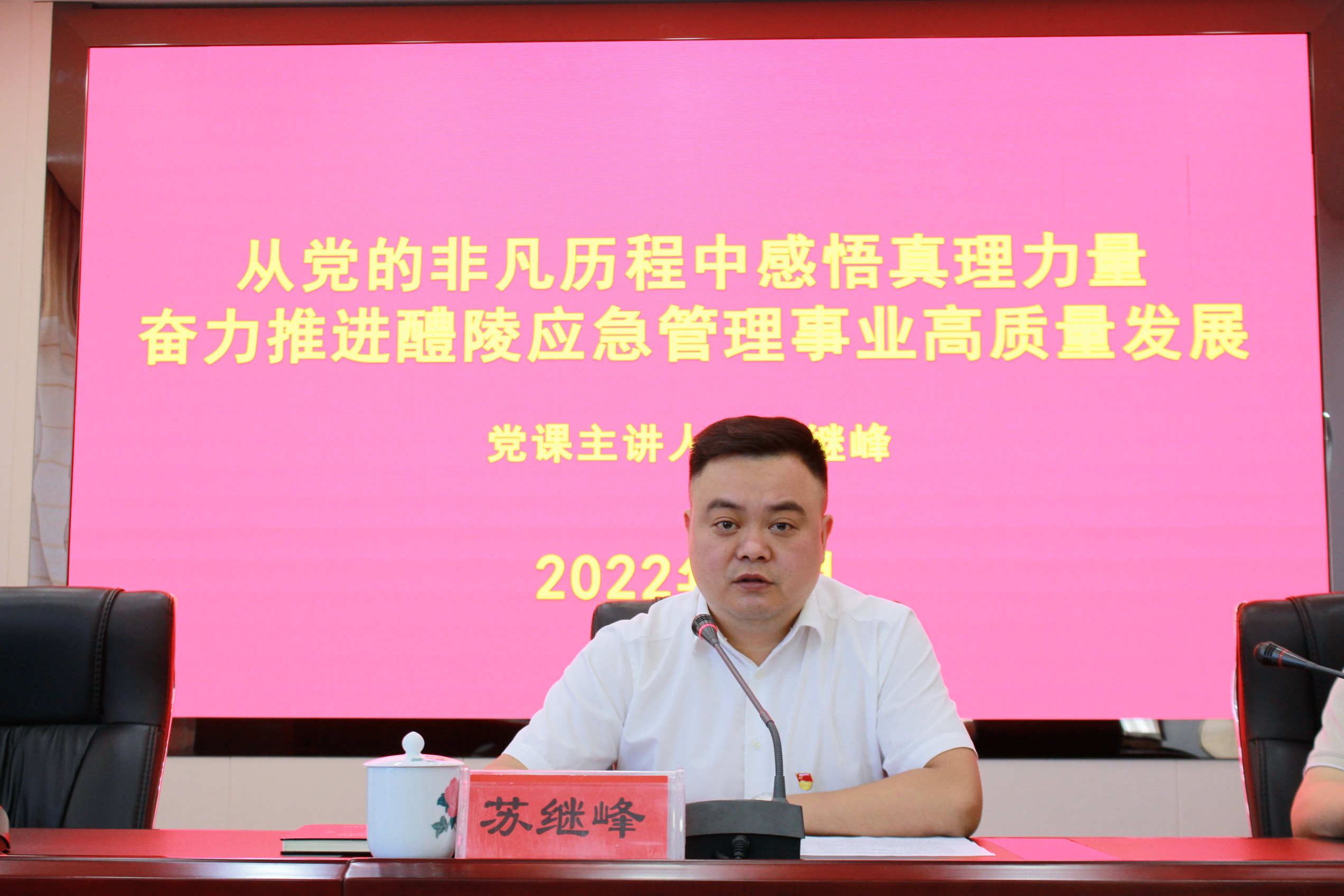 7月26日,市应急管理局开展"喜迎二十大 奋进新征程 庆祝中国共产党成立101周年"主题党日活动,党委书记、局长苏继峰出席并给全体机关党员上党课。