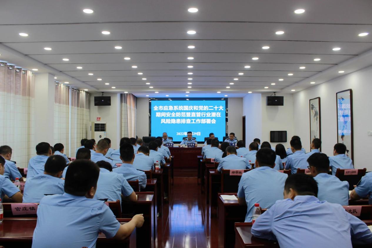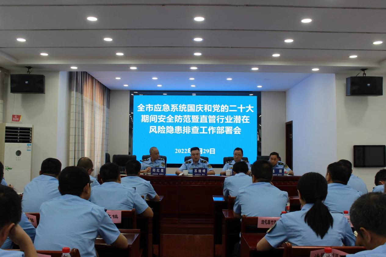 9月29日,全市应急管理系统召开国庆假期和党的二十大期间安全防范暨直管行业潜在风险隐患排查工作部署会。市应急局党委书记、局长苏继峰出席会议并讲话。强调要深入学习贯彻习近平总书记关于安全生产的重要指示精神,认真落实上级决策部署,以"时时放心不下"的责任感和"瞪大眼睛"的行动自觉,全力防风险、保安全、护稳定,牢牢守住红线底线,为党的二十大胜利召开营造安全稳定环境。
