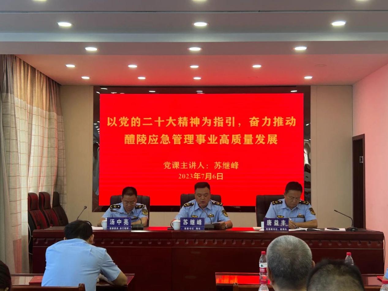 党委书记、局长苏继峰以"以党的二十大精神为指引,奋力推动醴陵应急管理事业高质量发展"为题为全体机关党员干部职工上了一堂精彩生动的专题党课。主要从认识重大意义,提高政治站位;坚持重大原则,把握总体要求;明确方法路径,抓实重点任务;防范重大风险,化解重大隐患;铸造忠诚队伍,打造应急铁军等五个方面,紧紧围绕贯彻党的二十大精神,站在宏观和全局的角度对如何推进国家安全体系和能力现代化进行深刻阐释,并结合当前全市安全生产和应急管理队伍建设等工作做出强调和部署。