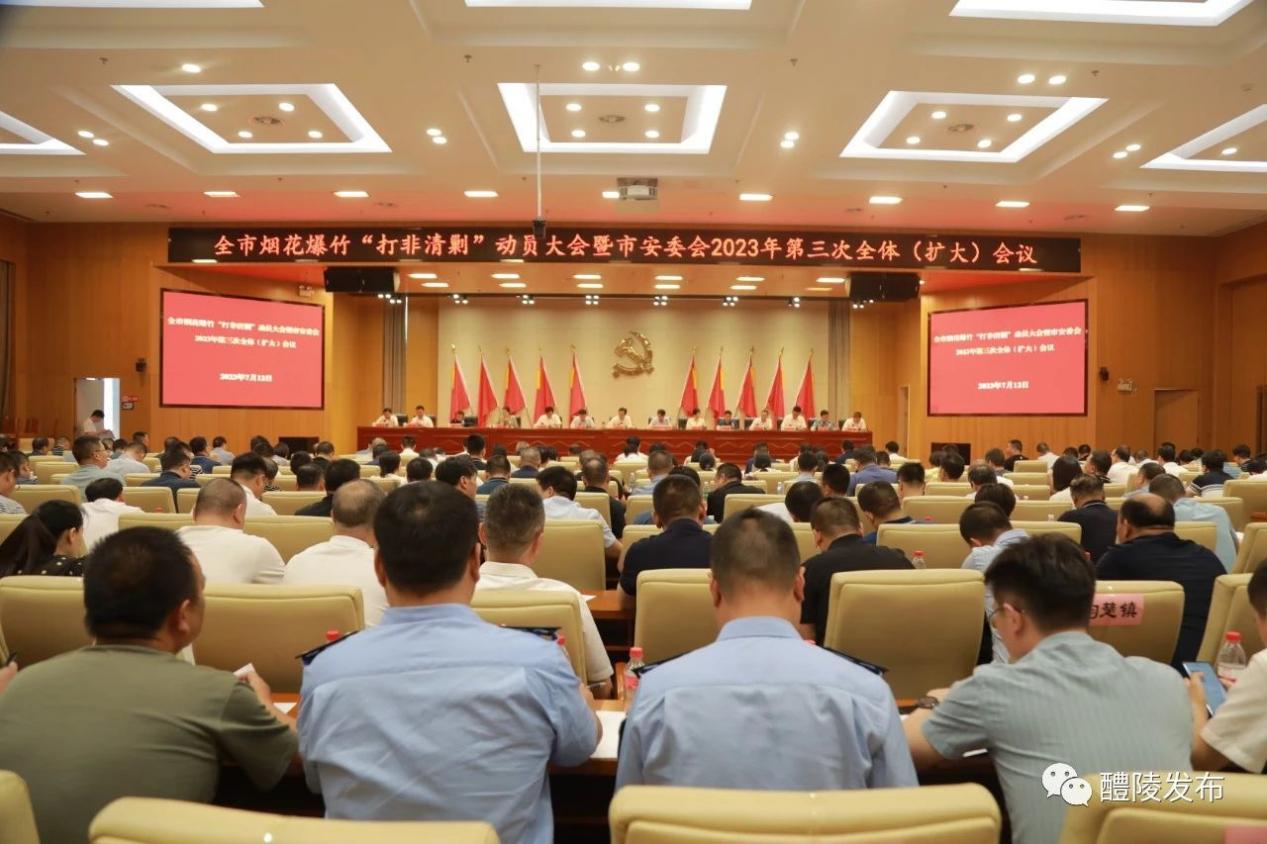 7月12日,全市烟花爆竹"打非清剿"动员大会暨市安委会2023年第三次全体(扩大)会议召开,市委书记、经开区党工委第一书记王利波作重要讲话,市委副书记、市长刘新华主持,市委副书记、沈潭镇党委书记阳建,市人大常委会主任贺小玲,市政协主席廖胜云参加。