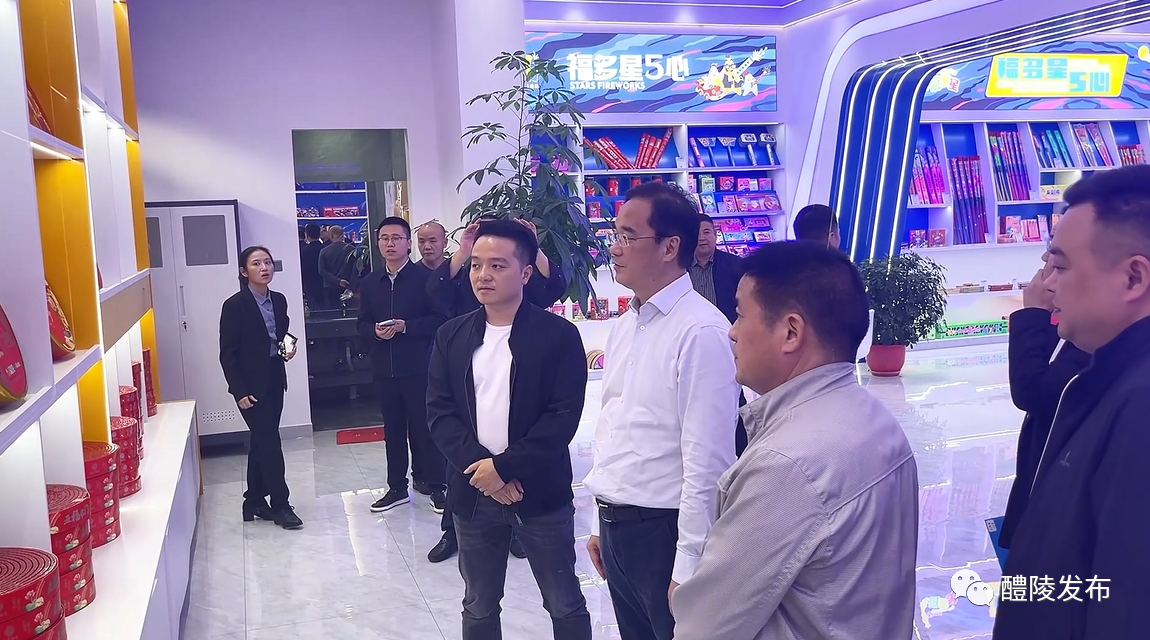 在李畋镇的明达花炮有限公司,王利波走进生产区域,详细了解复工复产、企业发展、安全管理、产品销售等情况,并与企业负责人深入交流。王利波强调,要认真落实好安全生产主体责任,强化安全管理,采用先进工艺、工序,确保安全生产无事故。