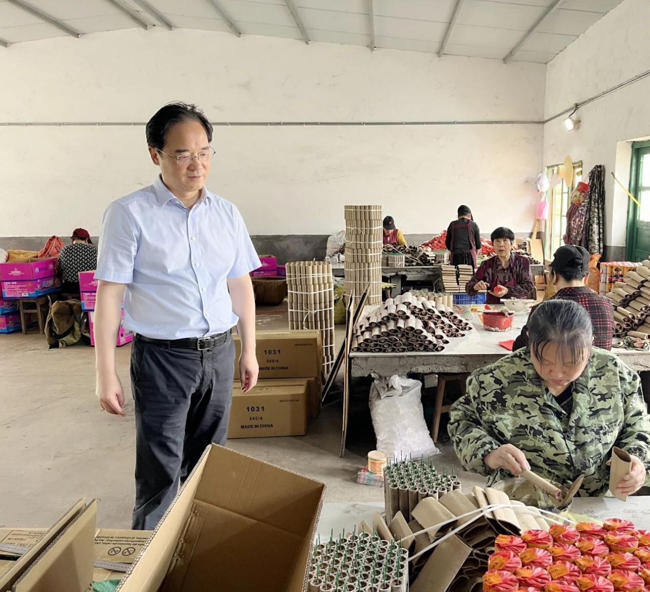 在沈潭镇三星里村的伍丰鞭炮烟花出口有限公司,王利波走进生产车间、仓库等地,实地查看企业产品生产流程,认真检查安全生产主体责任落实情况。他强调,企业要坚决克服麻痹和懈怠思想,加强安全管理,不断完善企业内部安全管理制度,确保员工操作规范,筑牢安全生产"最后一米"防线。