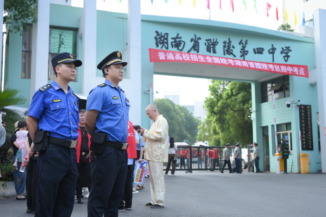 强化考点周边管控,定岗管理+机动巡查,为商业宣传、娱乐活动"降噪",尽心做好服务保障。