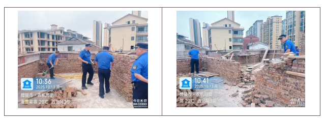 9月28日(国瓷网格):重点项目一中队联合街道执法力量,对国瓷大道一处未经审批、存在安全隐患的楼顶护栏,严格依照法定程序予以全部拆除,及时消除安全风险。