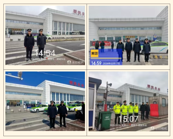 联合职能部门开展高铁站春运专班值勤,全天候护航。他们维护现场秩序,负责站前区域市容环境管理,劝导流动摊贩进入疏导区规范、有序经营,清理乱贴乱画(牛皮癣)等,并帮助行动不便老人进站,为行李繁多的旅客搭把手,用温情服务打通旅客出行的“最后一公里”。