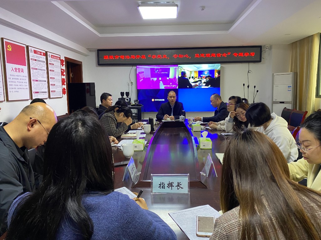 会议强调,要统筹推动党史学习教育扎实开展,淬炼政治品质,不断提高政治判断力、提高政治领悟力、政治执行力;要感悟初心宗旨,践行以人民为中心的发展思想,推动解决群众关注关切的法治法律问题,运用法治的力量为群众办实事、解难题;要把党史学习教育和干部队伍教育整顿激发出来的斗志和热情,转化为攻坚克难、拼搏奋进的实际行动,更好地提升司法行政工作能力,为广大群众提供优质高效便民的法律服务,为社会和谐稳定发挥应有的作用。