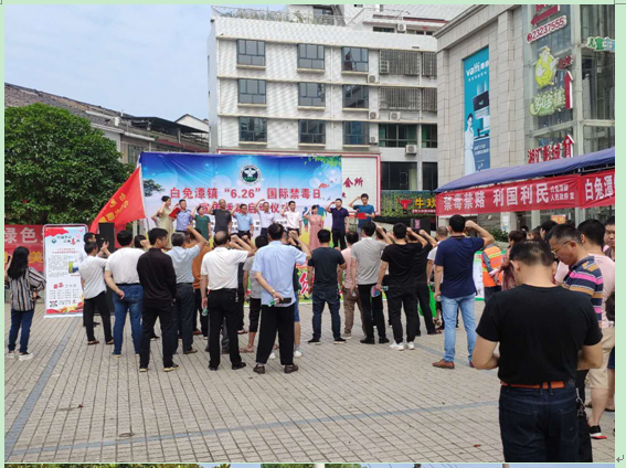 为进一步提高群众禁毒防毒意识,全力营造创建全市禁毒的浓厚氛围。6月26日醴陵市司法局、醴陵市禁毒办、醴陵市广播电视台、白兔潭镇人民政府、白兔潭镇各村(居)委会、醴陵市二医院、白兔潭派出所等多部门共同参与了禁毒宣传活动。
