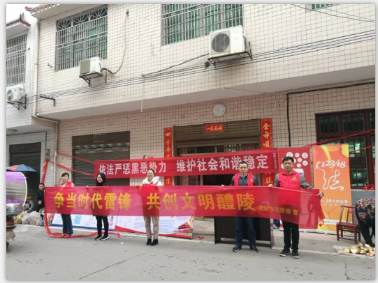 为深入贯彻党的十九大精神,大力弘扬"奉献、友爱、互助、进步"的志愿服务精神,3月19日上午,醴陵市司法局组织市公共法律服务志愿者在市茶山镇开展了 "争当时代雷锋、共创文明醴陵"学雷锋志愿服务活动。活动现场,通过设立法律咨询台、摆放宣传展板和标语、发放法律知识宣传资料,解答群众法律咨询等形式,积极向群众宣传扫黑除恶、禁毒、安全生产、三创四化、征地拆迁、劳动纠纷等与群众生活息息相关的法律知识。